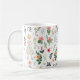 A folk art style drawing of a girl standing among flowers makes a cute and feminine coffee mug. Vintage looking, resembling designs from the 1950s, a little country, and very pretty!