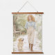 Girl and her Puppy Stroll through Spring Garden Hanging Tapestry