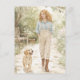 Girl and her Puppy Stroll through Spring Garden Holiday Postcard