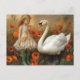 Girl and Swan in the Poppies Postcard