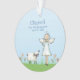 Girl Angel and Lamb, Blue, First Communion Ornament