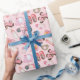 An Adorable Baby Girl Shower Wrapping Paper Patterned In Toys, Bottles, and Shoes