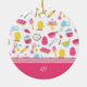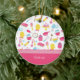 Does your little girl love to bake and cook? This cute custom baking pattern Christmas tree ceramic ornament is perfect! Ornament has cookies, oven mitts, measuring spoons and cups, cupcakes, cakes, muffin tins, mixers, and more. There are also sprinkles on top of a pink background and a place for the first name of your little kid on the front and the year on the back.