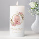 Girl Baptism Photo Pink Orchids Floral Geometric Pillar Candle