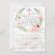 Girl Baptism Pink Roses Marble Cross Elegant Invitation