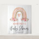 Rustic bohemian girl baby shower tapestry featuring a simple white background, a cute watercolor boho rainbow, elegant pink florals, and a modern welcome to template that is easy to customize.