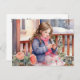 Detailed image of a lovely girl crafting outdoors on a snowy day. Soft pastel colors. Script on back wishes recipients a "Happy birthday!"