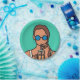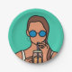 Funky colorful graphic of a teen girl drinking bubble tea. Bright blue modern colour design cool and trendy.