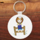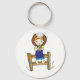 A girl sitting on a fence drinking a drink. This design looks really effective on these Keychain