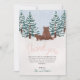 This cute and elegant girls baby shower thank you card design features a baby bear and mom, with evergreen pine trees and a matching illustration on the back. The thank you card can be personalized with the parent's (or child's) names. The perfect snowy winter themed addition to your co-ed couples baby shower or kids first birthday.