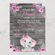 Girl Elephant Baby Shower Invitation, rustic, pink Invitation