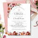 Blush pink floral watercolor girl First Communion invitation with exquisite floral arrangement on top left corner and field of flowers on card's bottom section. Flowers in gorgeous trendy blush pink, dusty rose, ivory, peach and burgundy tones. Card's back in blush pink with flower detail on the bottom. Invitation with section for "Ceremony" and "Reception" details. Coordinating products available. Part of our "Heaven in Rose" wedding and events collection.