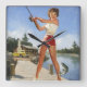 This product features Girl Fishing vintage pin up girl art.