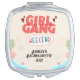 Personalized this cute compact mirror that says, "Girl Gang" for a bachelorette party, birthday weekend