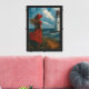 A bold woman in red gazes at the sea by a lighthouse. This canvas art adds drama, freedom, and coastal charm to your living space. A striking piece for sea lovers and dreamers alike.