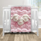 Adorable lamb baby blanket with cute fluffy lamb sheep faces with bows background and pink back side.. This sweet lamb baby blanket works great for bringing baby home or as a baby shower gift.