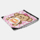 A cute brown smiling girl monkey with pink bow holds a big white and red stitched baseball with pink outlined text that reads I Love Dad on a drawstring backpack she's sure to love! The bag itself is pink with lots of little baseballs!
