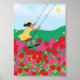 Girl on a swing with flowers poster