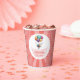 Delightful pink and white baby shower Paper Cups with a balloon, beautifully designed to hold sweet surprises for guests celebrating the new arrival.