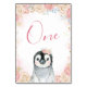 Girl Penguin Winter Snowflake Baby Shower Table Number Sign