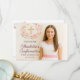 Add a horizontal size photo on the front. A pink bow and a golden cross as decoration in left corner on the back. Personalize and add a name and thank you note.