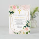Girl Pink Gold Cross Floral Baptism Foil Invitation