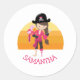 Girl Pink Parrot Pirate Party Classic Round Sticker