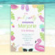 Girl Pool party, tropical, flamingo float Invitation