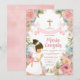 Girl Praying First Holy Communion Pink Floral Invitation
