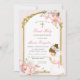 Girl Praying Gold First Holy Communion Pink Floral Invitation