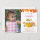 Girl Fall Pumpkin First Birthday Invitation with custom photo. Fall Birthday Party Invitation. Gold Gliiter. Pink, Orange and Gold. 1st First Bday Invite. For further customization, please click the "Customize it" button and use our design tool to modify this template.