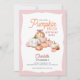 This charming pumpkin patch birthday invitation showcases a delightful mix of orange, white and pink pumpkins, with some adorned with sweet little bows. This truly "girly" invite is perfect for a young girl's fall birthday celebration.