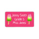 Cute girly colorful raspberry ice-block popsicles themed book labels or school item sticker labels for young school kids. This design features a cute berry yummy popsicles against a customisable lime background. The text is fully customisable to include own name and class details.