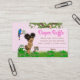 Girl safari diaper raffle tickets with adorable African American baby girl with cute afro hair and baby safari animals on a pink damask jungle background. These girl safari diaper raffle tickets are easily personalized with your text.