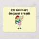 Cute stick figure girl with a pile of books design that promotes reading in children with text that reads "I'm so smart because I read!".