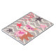 A white bunny rabbit superhero in a pink mask and dress with a heart, a brown cape, and striped socks on a background of gray and white chevron stripes, pink, deep wine, and red stars, and blue and red trees on products for the home, office, and personal use. This cute Girl Superhero Bunny design is great for kids and adults who love fun, colorful, whimsical designs!