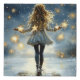 Girl Winter Stars Snowy Night Faux Canvas Print