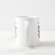 A mug with a cute retro image featuring a whimsical girl with rosy cheeks and flowers in her hair. Carrying a green frog doll.