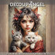 This delicate design showcases an elegant young woman with cat ears, dressed in a flowing red gown. She lovingly holds two adorable cats in her arms, exuding grace and charm. The artwork’s refined details and harmonious composition make it a perfect choice for sophisticated decoupage projects.