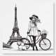 Girl with her dog and bicycle in Paris near Eiffel tower