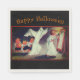 Halloween party napkins with customizable text and a vintage image of girl looking in a mirror to see a Spooky Ghost behind her - a trick from some little Halloween sprites!