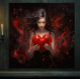 In a striking visual composition, an enchanting scene unfolds with a girl dressed in elegant black attire, cradling a large heart in her hands. The girl's flowing black hair adds a touch of drama and movement to the scene, creating a sense of ethereal beauty.