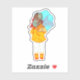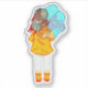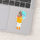 Girl with Umbrella in Wind Drawing Sticker. This drawing portrays a girl standing in the wind, her back turned towards the viewer. She is holding an umbrella. The girl's hair is being blown in the wind.