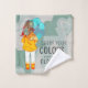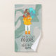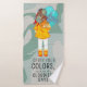 Girl with Umbrella in Wind Positive Quote Towel Set. This drawing portrays a girl standing in the wind, her back turned towards the viewer. She is holding an umbrella. The girl's hair is being blown in the wind. The positive text says "Carry your colors even on the cloudiest days".