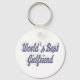 Key chain with World's best girlfriend in 3D blue gray text. Round and square key chains available in several sizes.