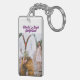 Keychain with World's Best girlfriend in 3D purple text. Customize it with your own photo.