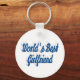 Key chain with World's best girlfriend in 3D sea blue text. Round and square key chains available in several sizes.