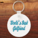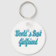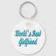 Key chain with World's best girlfriend in 3D sky blue text. Round and square key chains available in several sizes.