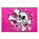 Girlie skull and crossbones with bow is surrounded by an explosion of pink with hearts and stars.