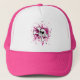 Girlie skull and crossbones with bow is surrounded by an explosion of pink with hearts and stars.